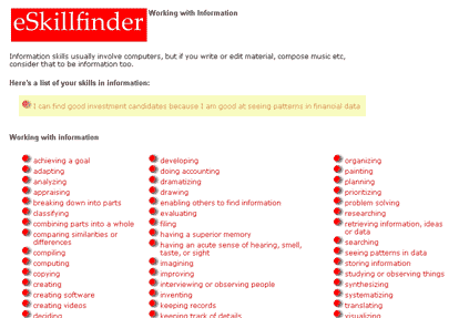 eSkillfinder returns to the selection page. Your entry has been added to your inventory and now appears at the top of the page: